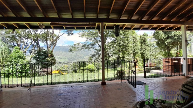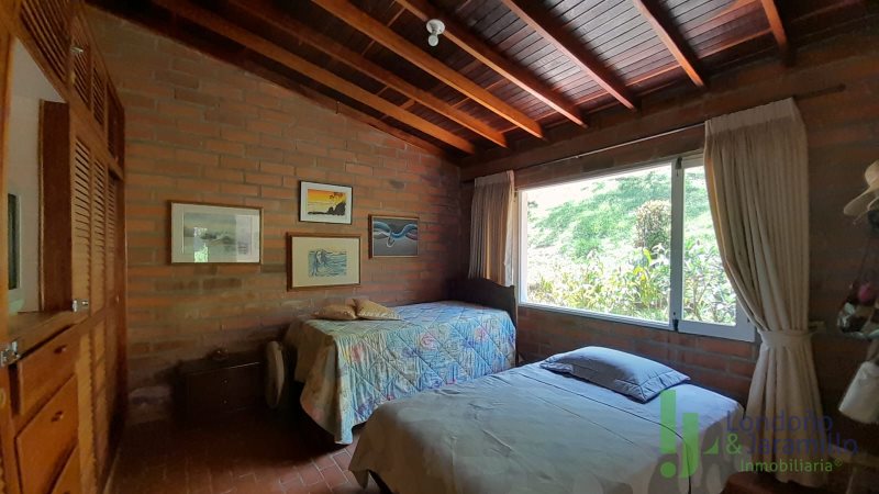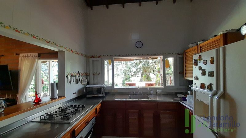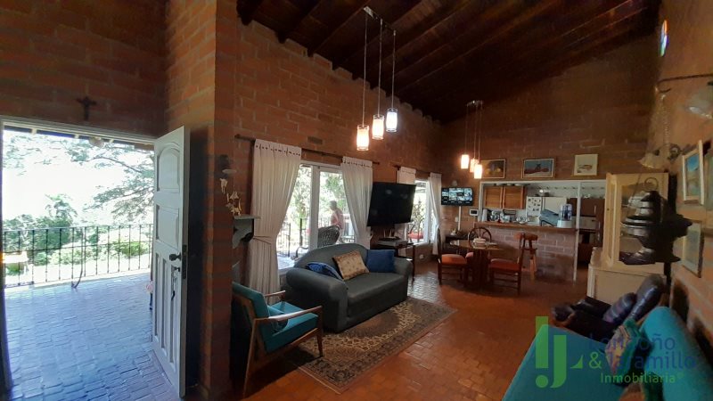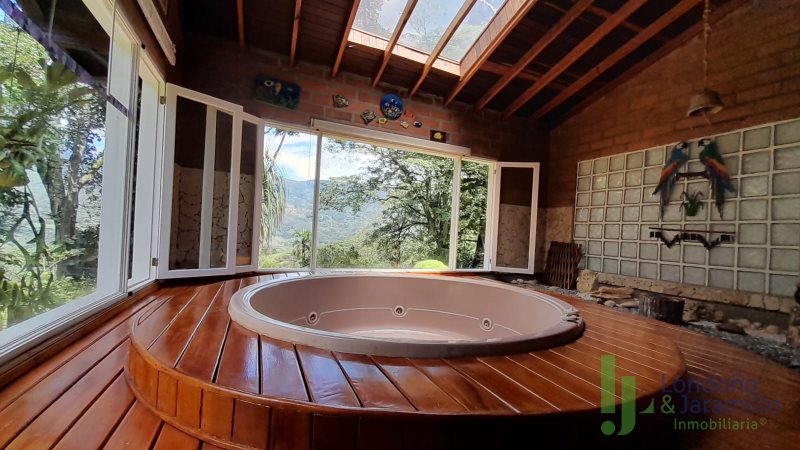 Venta finca con lote de 9.934 m2 y 369 m2 construidos. Con 1 parqueadero cubierto para 2 carros,1 estadero cubierto tipo terraza. Cuenta con casa principal en ladrillo catalán, tejas barro y madera zapan, piso en gres, 3 habitaciones con baños completos,1 biblioteca, patio ropas cubierto, 4 domos de iluminación natural, zona húmeda con jacuzzi y baño turco, jardín interior y vista en 180 grados. Red de gas y agua caliente en toda la casa, baño social en zona húmeda, 2 tanques internos para almacenamiento agua. Salón comedor con 2 barras una al comedor y otra al corredor, cocina integral en cedro rojo, corredor amplio con reja de hierro. Closet en habitaciones y 1 de linos, 4 perreras cubiertas, cuarto útil, 1 bodega,1 planta de Inge aguas para potabilización del agua. Otra área tipo lof de 84,5 m2 con cocineta, baño completo para mayordomo. Pozo séptico y trampa de grasas. Puerta acceso eléctrica, con videoportero citofonía en 4 sitios, circuito cerrado de tv,11 cámaras, 1 kiosco, entrada en adoquines hasta la casa (sirve de parqueo). Frutales, ornamentales,1 guadual y bambú, jardines y el lindero es en swingla.