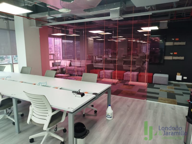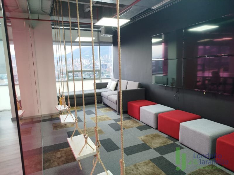 Arriendo oficina de 117.9 m2. Con 3 parqueaderos. Cuenta con 1 cocineta, 2 baños, aire acondicionado, amplio ventanal muy iluminada, piso laminado. Zonas comunes: auditorio, 2 salones de juntas, zonas de descanso, portería 24h, comedores, baños y baños para discapacitados. Cerca de la glorieta que une a los municipios de; Envigado, Sabaneta e Itagüí.
