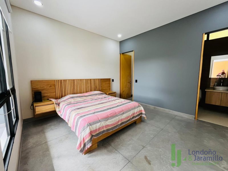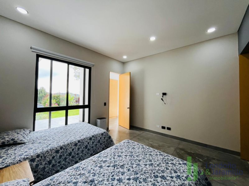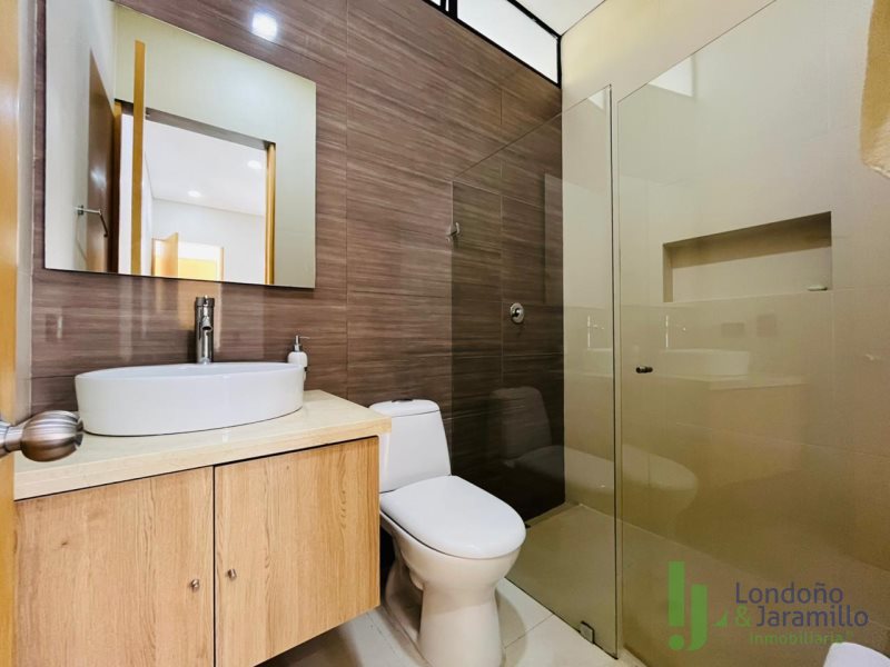 Arriendo casa de 248 m2. En lote de 807 m2. Con 2 parqueaderos cubiertos más cuarto útil. Cuenta con 3 habitaciones, cada una con baño, 1 baño social, closets y vestier, sala, comedor, cuarto de hobbes, cocina integral, alcoba del servicio con baño, zona de ropas con calentador, terraza, jardín. Zonas comunes: parque infantil, salón social, portería 24/7. Cerca de supermercados, parques, centros comerciales. Excelente ruta de transporte.