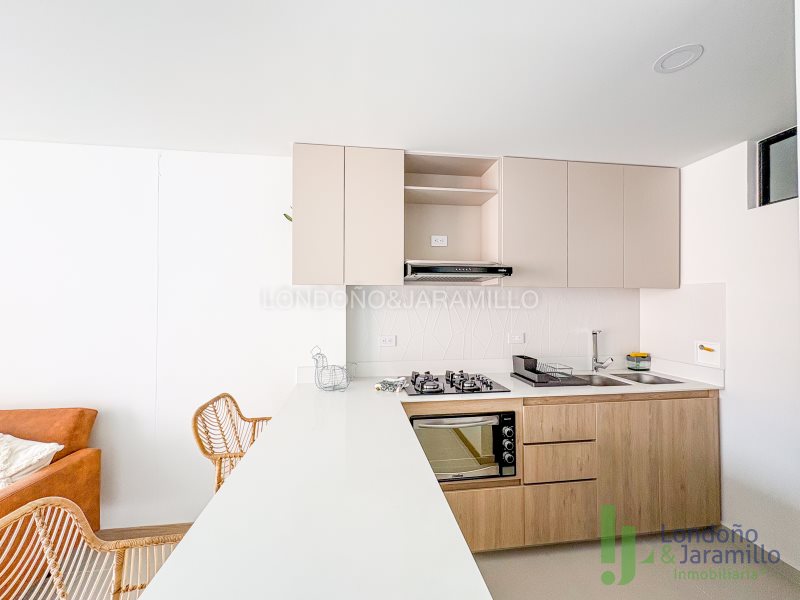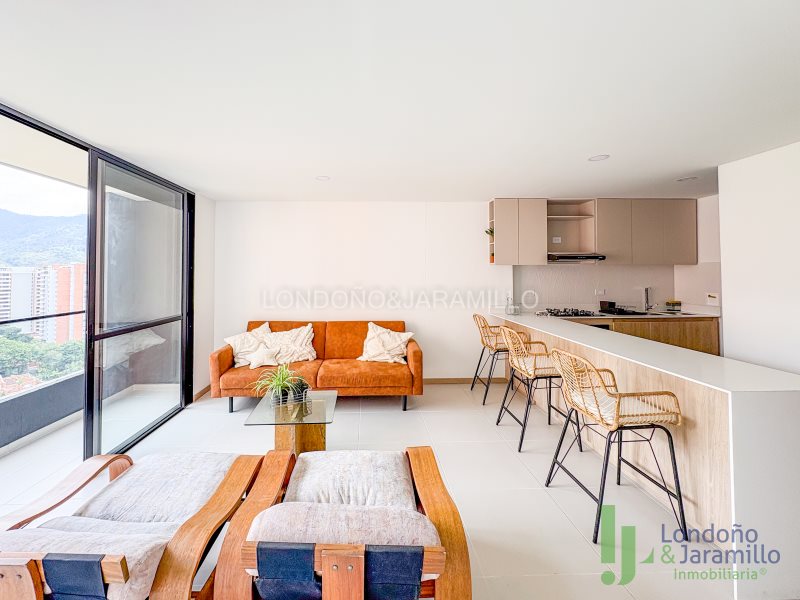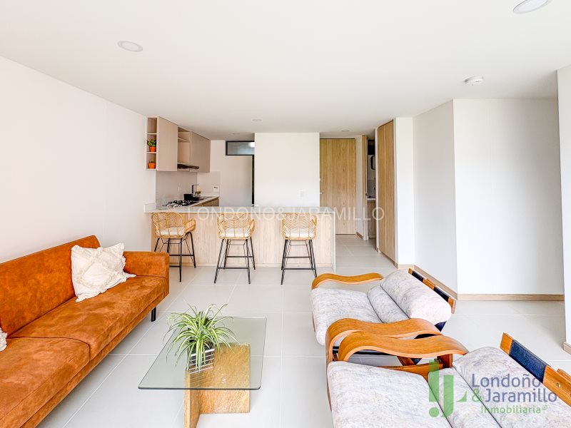 Arriendo apartamento amoblado de 67 m2. Con 1 parqueadero y cuarto útil. Cuenta con 2 alcobas, principal con baño y vestier, 1 baño social, estudio pequeño, sala-comedor, balcón, cocina integral, calentador y zona de ropas.