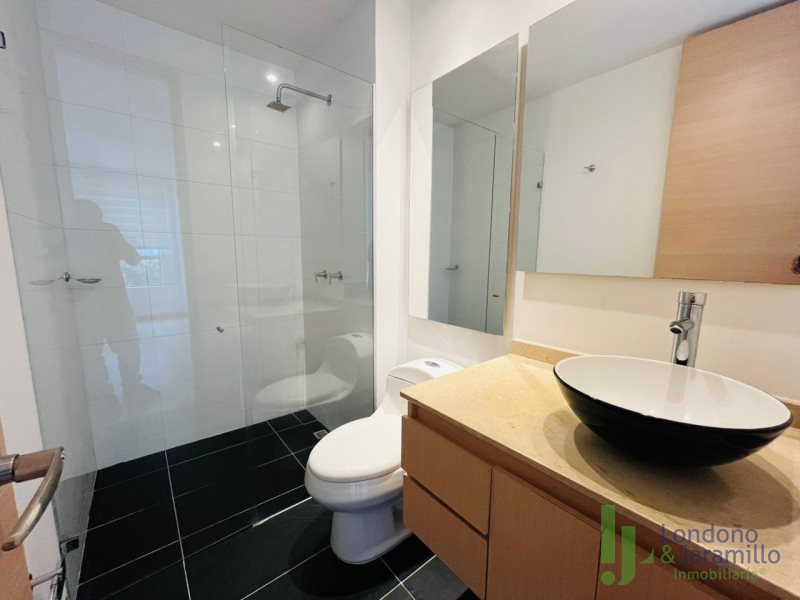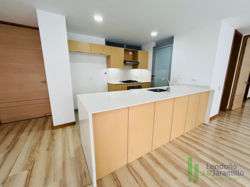 Arriendo apartamento, de 100 m2. Con 2 parqueaderos y cuarto útil. Cuenta con 2 habitaciones, cada una con baño y vestier, 1 baño social, sala-comedor, cocina integral, 1 balcón amplio, zona de ropas con calentador. Zonas comunes: Portería 24/7, piscina, gimnasio, cancha múltiple, juegos infantiles. Cerca de supermercados, parques, centros comerciales. Excelente ruta de transporte.