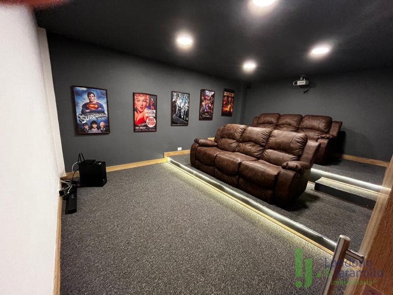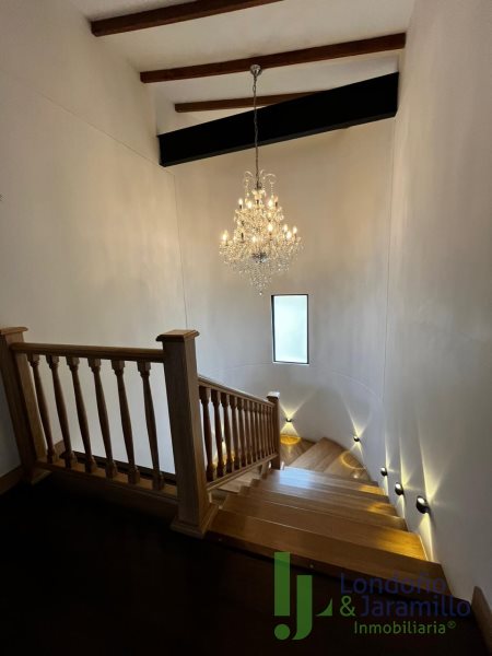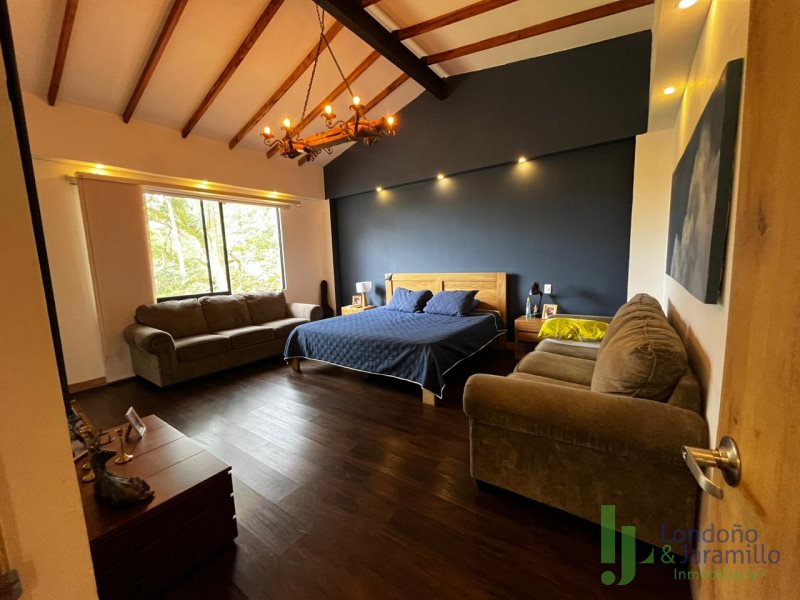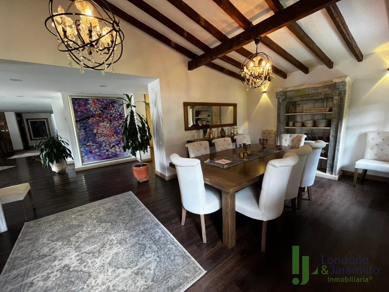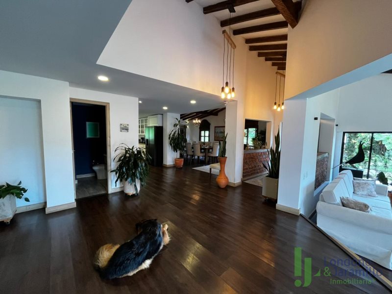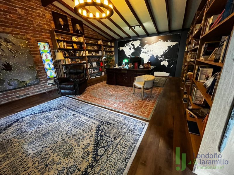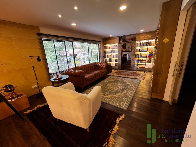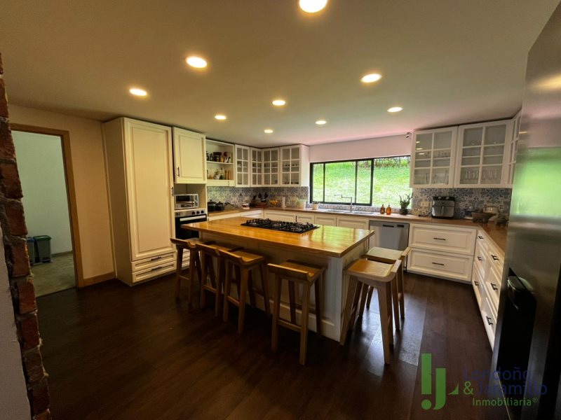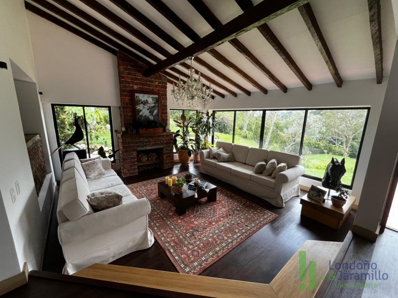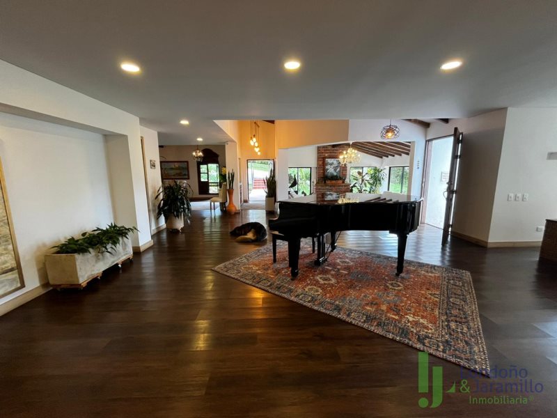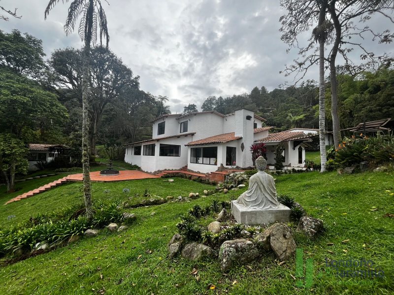 Venta finca en Conjunto cerrado-Parcelación con casa (2 pisos) de Lote: 6.460 m2 – Construido 517.9 m2 Cuenta con 6 habitaciones, cada una cuenta con closet interno. 6 baños en la casa principal.Habitación y baño de servicio. Cocina integral, zona de ropas. La casa principal cuenta con espacios adecuados como una biblioteca, sala de cine, sala de televisión, dos salas sociales, 2 chimeneas y un bar. La propiedad cuenta además con cava de vinos, zona BBQ, salón social, gimnasio, ermita y fuente de agua natural. La finca cuenta en su alrededor con árboles frutales, por la propiedad pasan dos quebradas y el vecino es un bosque nativo. Cuenta con una casa para mayordomos con 2 habitaciones y dos baños.