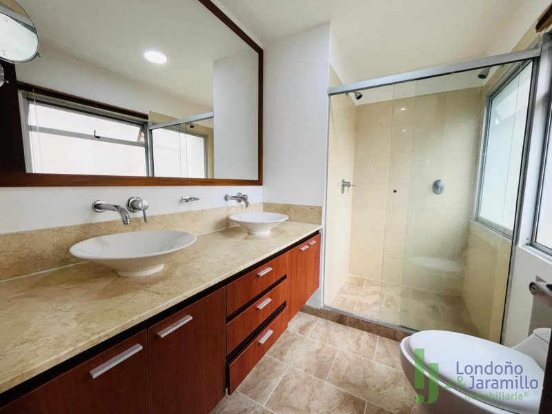 Arriendo apartamento de 140 m2. Con 2 parqueaderos más cuarto útil. Cuenta con 3 habitaciones con baño, la principal con baño y vestier, 1 baño social, 1 closet, sala, comedor, cocina integral, zona de ropas con calentador, alcoba de servicio con baño, 1 balcón. Zonas comunes: Portería 24/7, salón social, juegos infantiles. Cerca de supermercados, parques, centros comerciales. Excelente ruta de transporte.