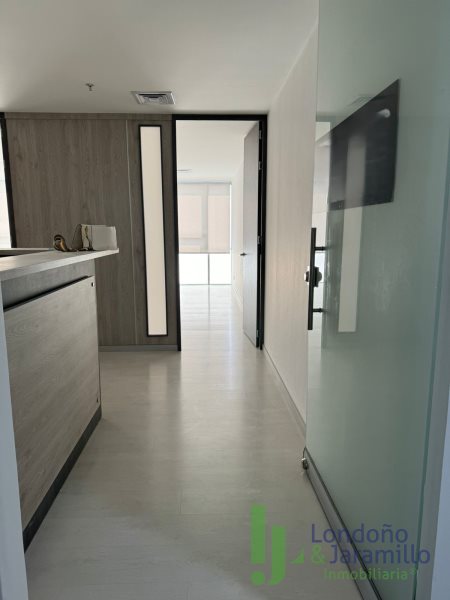 Arriendo oficina de 68 m2. Con 2 parqueaderos. Cuenta con 1 cocineta, 2 baños, aire acondicionado, mueble de recepción y división , amplio ventanal y muy iluminada. Zonas comunes: auditorio, 2 salones de juntas, zonas de descanso, portería 24h, comedores, baños y baños para discapacitados. Cerca de la glorieta que une a los municipios de; Envigado, Sabaneta e Itagüí.