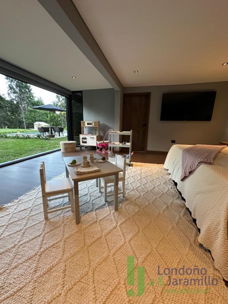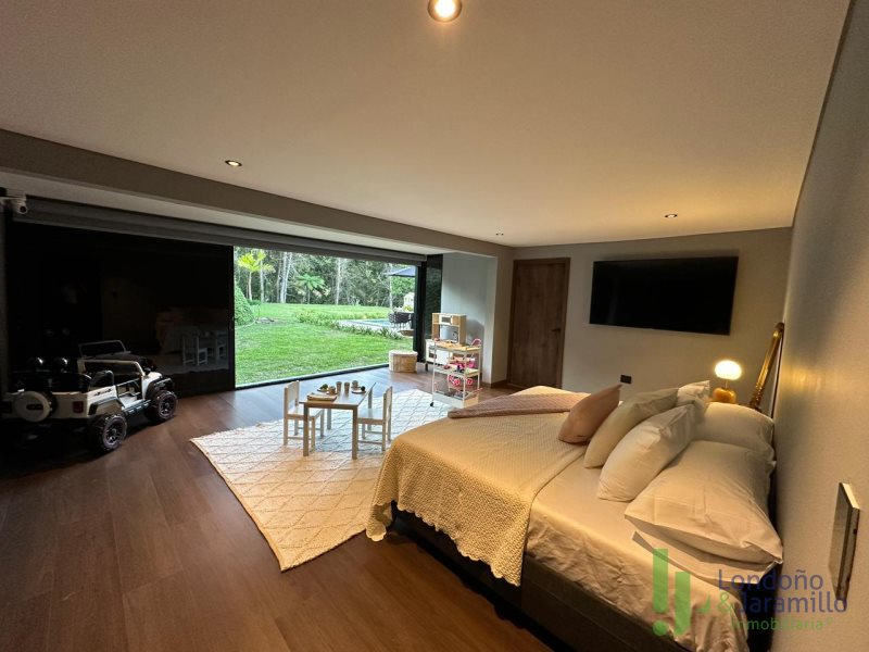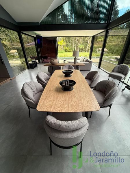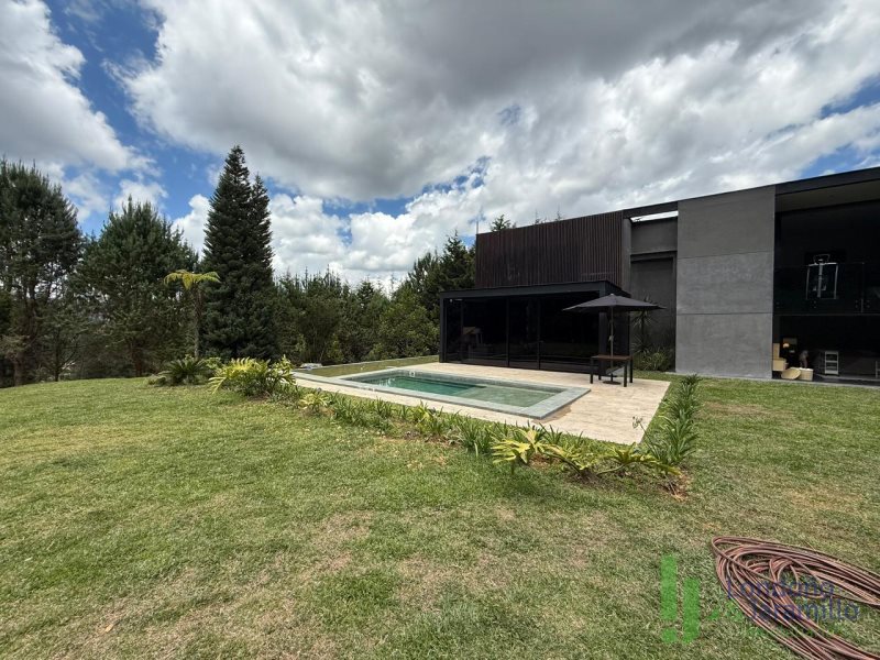 Venta casa de dos niveles. Área lote 5.010 m2, área construida 614 m2. Cuenta 10 garajes, 4 habitaciones amplias, 4 baños, bañera, jacuzzi piscina. Cocina integral, zona de ropas. Características externas: 2 pesebreras, casa auxiliar (almacén o mayordomo). agua propia, rio, cascada. A 12 minutos del aeropuerto JMC. Excelente servicio de transporte.
