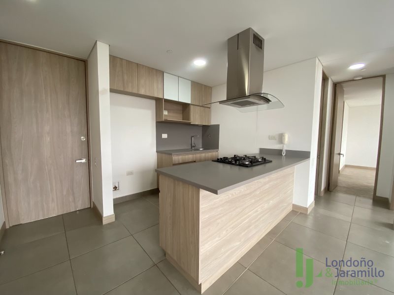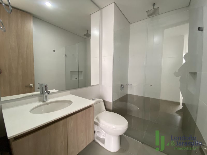 Arriendo apartamento de 84 m2. Con 2 parqueaderos más cuarto útil. Cuenta con 2 habitaciones, principal con baño y vestier, 1 baño social, 1 clóset, estudio, sala, 1 balcón amplio, cocina integral en isla, zona de ropas con calentador. Zonas comunes: Portería 24/7, piscina, gimnasio, juegos infantiles, salón social, cancha de squash, zonas verdes, sauna, turco y coworking. Cerca de supermercados, parques, centros comerciales. Excelente ruta de transporte.