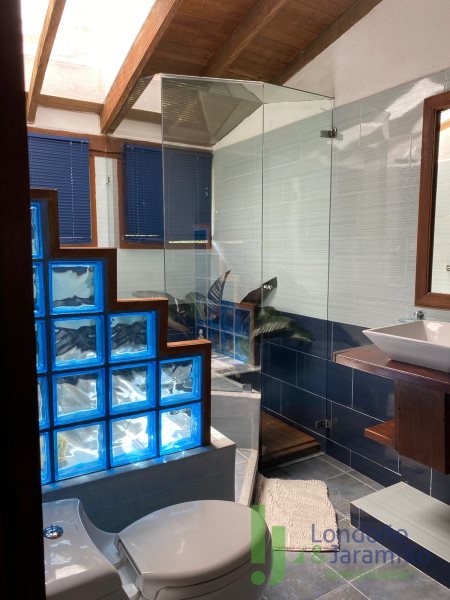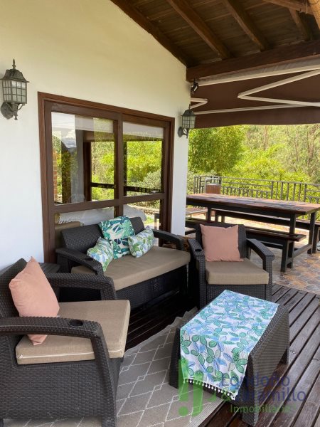 En el lote se encuentra la casa principal de aproximadamente 204 m², más deck de jacuzzi de 49 m² y parqueadero construido de 140 m², para un total construido aproximado de 300 m² en la casa principal (incluyendo deck y parqueadero). Además, dispone de casa de mayordomo de aproximadamente 80 m² construidos en dos niveles.