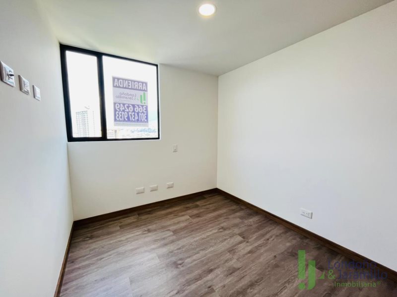 Arriendo apartamento PARA ESTRENAR de 86 m2. Con 2 parqueaderos y cuarto útil. Cuenta con 3 habitaciones, la principal con baño y vestier, 1 baño social, sala -comedor, estudio, 1 balcón con vista a la ciudad, cocina integral, zona de ropas con calentador. Zonas comunes: en construcción parque infantil, salón social, piscina y portería 24/7. Cerca de supermercados, parques, centros comerciales. Excelente ruta de transporte.