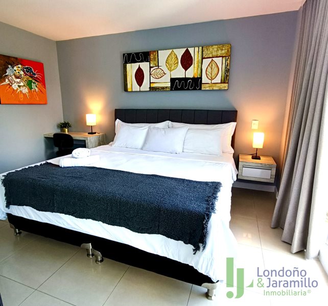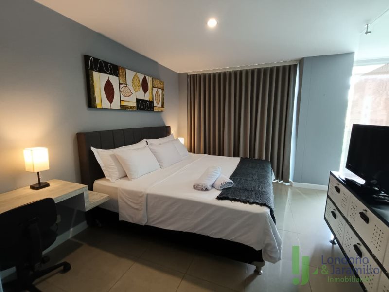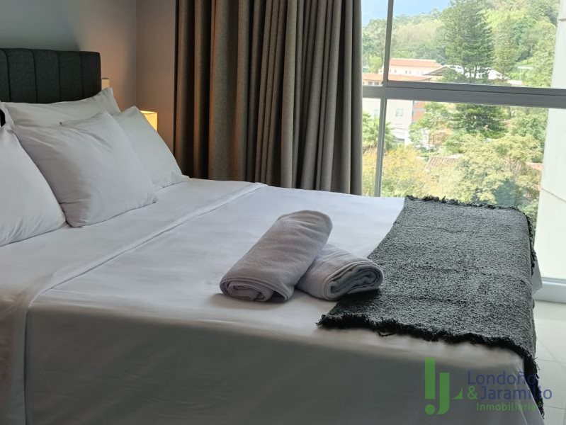 Arriendo apartamento amoblado de 64 m2. Cuenta con 1 parqueadero, salón con práctica división en vidrio opaco para 1 alcoba, 1 vestier, 2 baños (uno completo y otro social), balcón con linda vista., cocina integral con bahía y zona de ropas con calentador.
