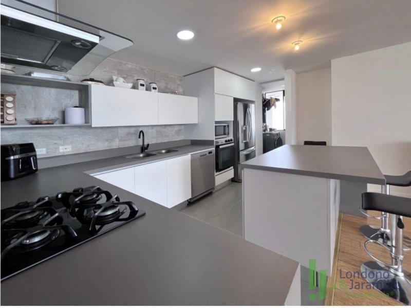 Venta apartamento de 190 m2. Con 2 parqueaderos paralelos más cuarto útil. Cuenta con 3 habitaciones cada una con baño y vestier, 1 baño social, salón-comedor amplio, estudio , 1 balcón grande con vista a la ciudad, cocina integral, alcoba de servicio con baño zona de ropas con calentador. Zonas comunes: Zonas comunes: parque infantil, piscina, cancha F5, salón social, gimnasio y portería 24/7. Cerca de supermercados, parques, centros comerciales. Excelente ruta de transporte.