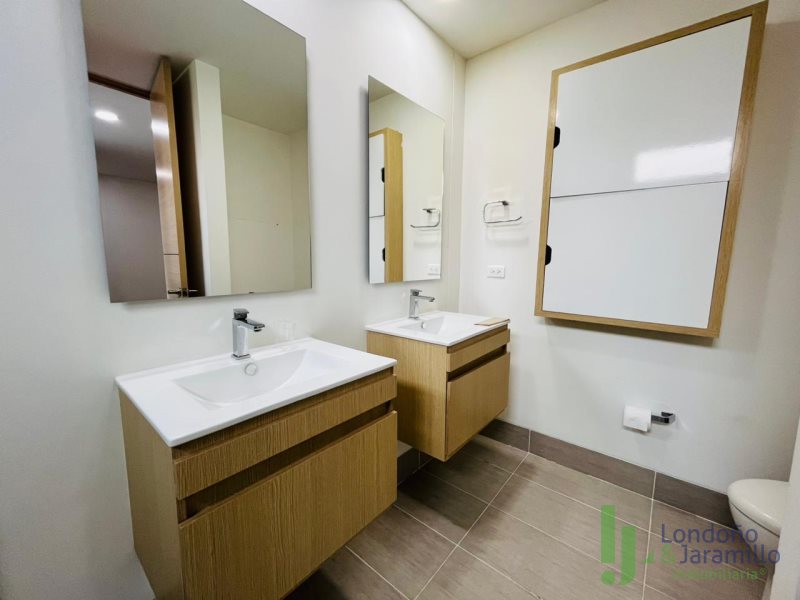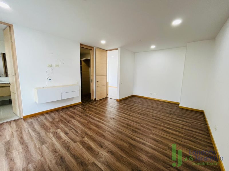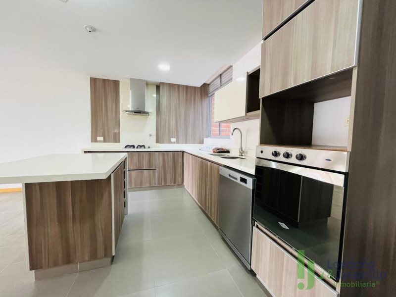 Arriendo apartamento de 192 m2. Con 3 parqueaderos lineales más cuarto útil. Cuenta con 3 habitaciones cada una con baño y vestier. 1 baño social, salón-comedor amplio, estudio, 2 balcones, cocina integral en isla con lavavajillas, alcoba de servicio con baño, alacena y linos, zona de ropas con calentador. Zonas comunes: parque infantil, salón social, gimnasio, piscina y portería 24/7, cancha de squash. Cerca de supermercados, parques, centros comerciales. Excelente ruta de transporte.