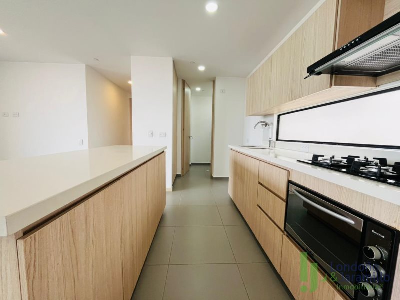 Arriendo apartamento de 116 m2. Con 2 parqueaderos más cuarto útil. Cuenta con 3 habitaciones, la principal con baño y vestier grande. Segunda habitación con baño y closet y tercera habitación con closet, 1 baño social, 1 closet de lino, salón-comedor, estudio, 1 balcón, cocina integral en isla, zona de ropas con calentador. Zonas comunes: ascensor, baño turco, cancha de squash, cancha polideportiva, juegos infantiles, parqueadero de visitantes, piscina, salón social, sauna. Cerca de supermercados, parques, centros comerciales. Excelente ruta de transporte.