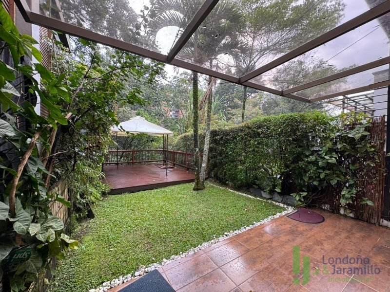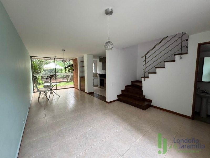 Arriendo casa dos niveles de 120 mt2 + 80 mt2 de jardín y deck. Con 2 parqueaderos. Cuenta con 3 habitaciones, 2 con baño, 1 baño social, sala-comedor, terraza con jardín y deck, cocina integral, balcón amplio, zona de ropas con calentador. La unidad cuenta con portería 24/7 piscina, salón social, cancha, juegos infantiles, zona verde. Cerca de supermercados, parques, centros comerciales. Excelente ruta de transporte.