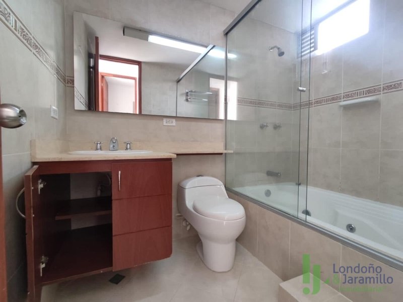 Arriendo apartamento de 150 m2. Con 1 parqueadero doble lineal más cuarto útil. Cuenta con 3 habitaciones, dos de ellas con baño, la principal con jacuzzi y vestier, 1 baño social, sala-comedor, 2 balcones, estudio, aire acondicionado, cocina integral, habitación de servicio con baño, zona de ropas con calentador. Zonas comunes con gimnasio, parque infantil, salón social, piscina y portería 24/7. Cerca de supermercados, parques, centros comerciales. Excelente ruta de transporte.