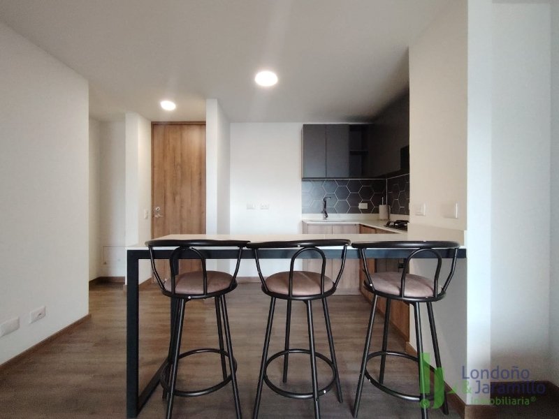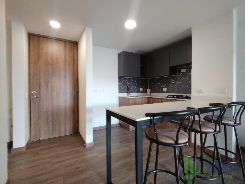 Arriendo apartamento para estrenar de 60 m2. Con 1 parqueadero más cuarto útil. Cuenta con 2 habitaciones, la principal con baño y vestier, 1 baño social, 1 balcón, sala-comedor, cocina integral, zona de ropas con calentador. Zonas comunes: en construcción parque infantil, salón social, piscina y portería 24/7. Cerca de supermercados, parques, centros comerciales. Excelente ruta de transporte.